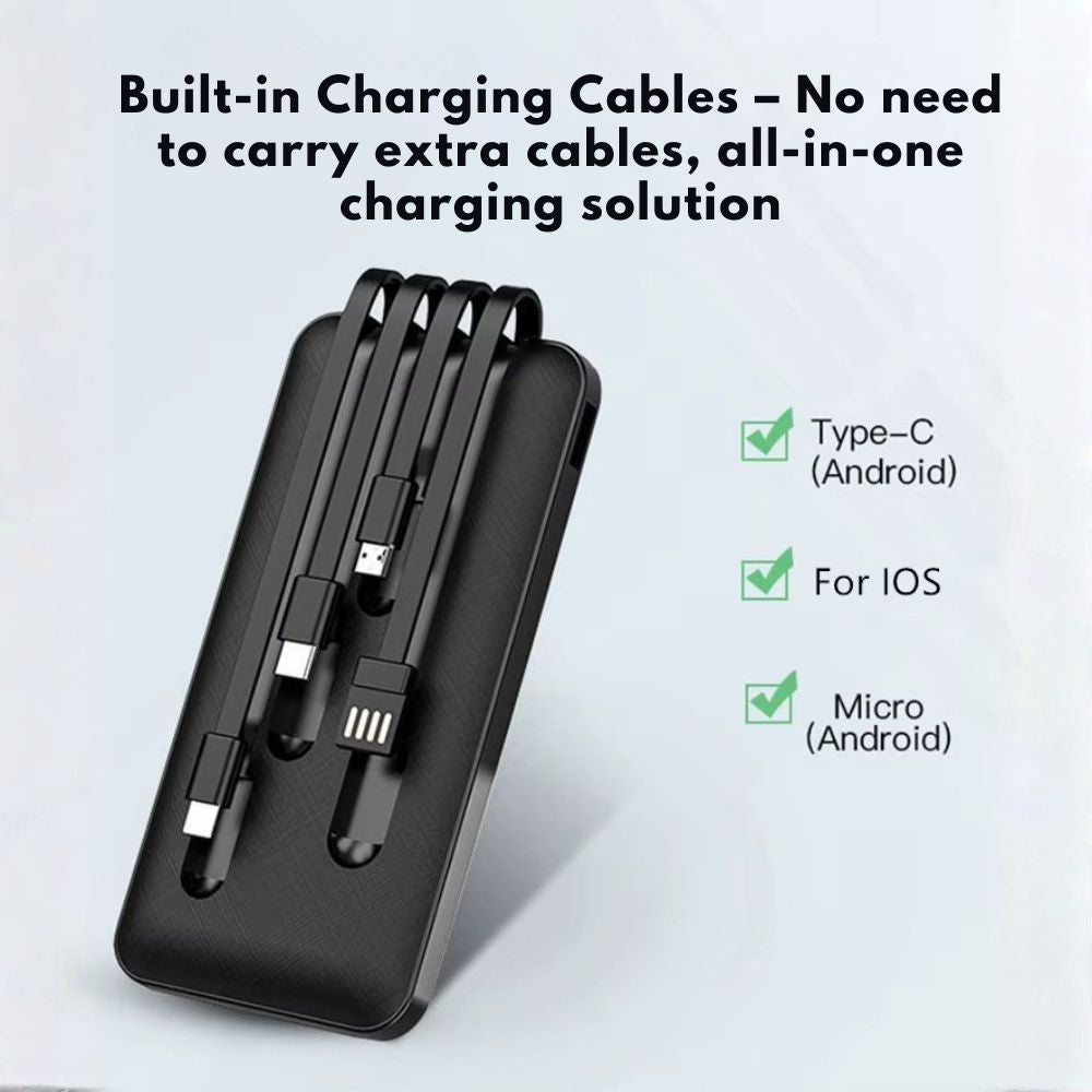 • 🔌 Built-in Charging Cables – No extra cables required